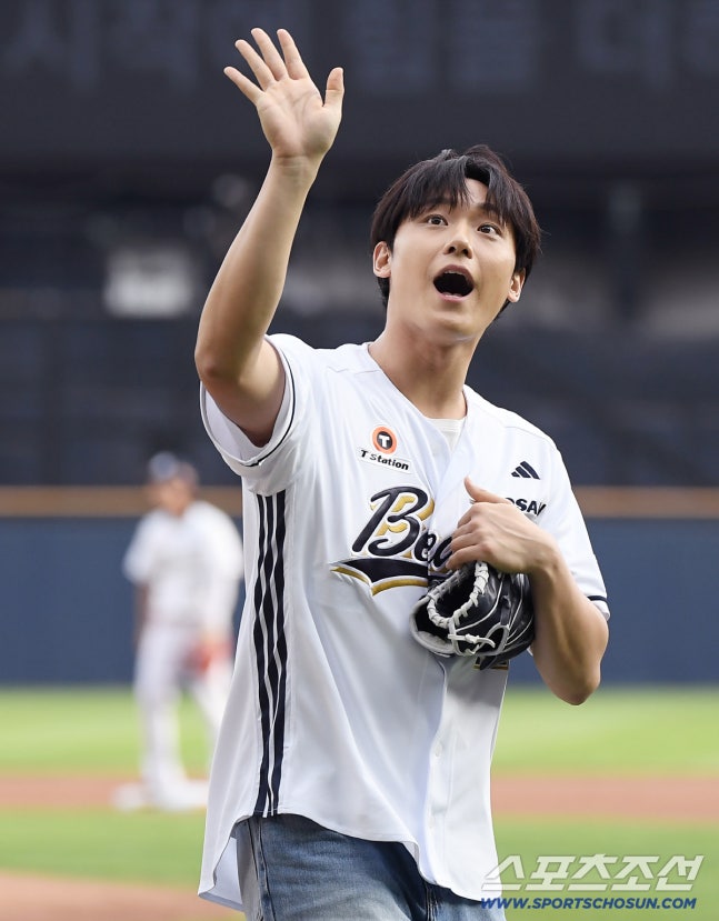 17일 서울 잠실구장에서 열린 KIA-두산전. 배우 이도현이 시구를 한 후 팬들을 향해 인사하고 있다. /2025.8.17/